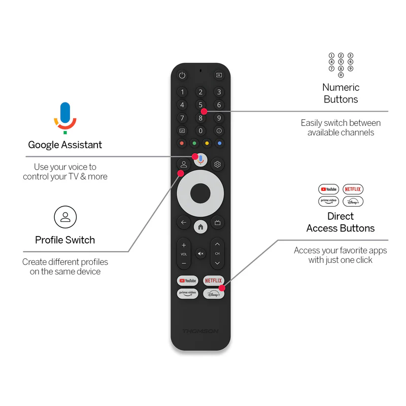 4K Ultra-HD | Google TV | Google Voice Control| Google Cast | Netflix/YouTube/Prime Video/Disney+/Spotify | Wi-Fi | Bluetooth 5.0 | HDMI 2.1 | USB 2.0 | HDR10 | Dolby Atmos | Dolby Digital+ | 2 GB RAM | 32 GB Flash